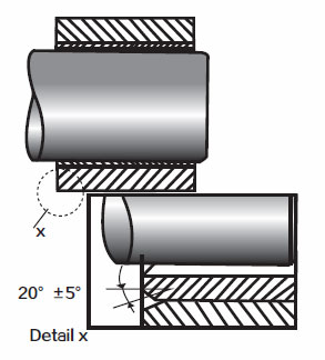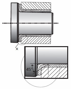 关于翻边套,从翻边套口到轴向转换组件必须考虑半径的转变,切面要有—个足够大的倒角。以防翻边套口聚集污垢后仍然可以支持轴向载荷部件的边缘。